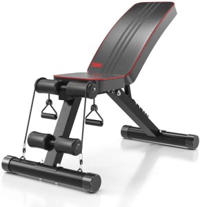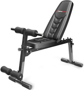 | Ce que l’on aime | Très facile à assembler. Caoutchouc antidérapant pour protéger le sol. Poids maximum de l’utilisateur plus élevé que les autres. | Multitude d’exercices pour solliciter un maximum de muscles biceps jambes haut du corps très complet | Il change de position facilement. Avec courroie et poignée pour le transport. Bon rapport qualité/prix. | Il change de position facilement. Avec courroie et poignée pour le transport. Bon rapport qualité/prix. | Un des meilleurs prix du genre. Plus position sur le dossier. Pratique à plier et à ranger et léger à transporter. |
