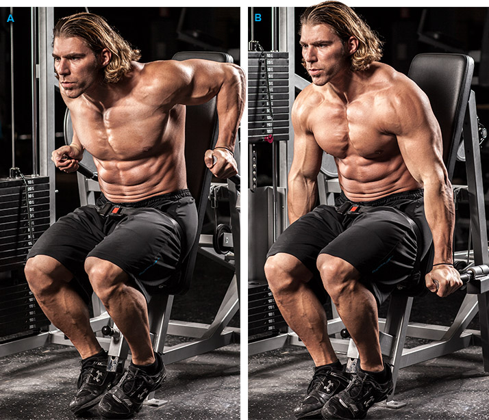Dans votre entraînement : vous ne pourrez pas faire cet exercice avec beaucoup de poids, alors faites-le en dernier dans votre routine, pendant 3 séries de 10-12 répétitions. Le nom du jeu ici est la contraction maximale.