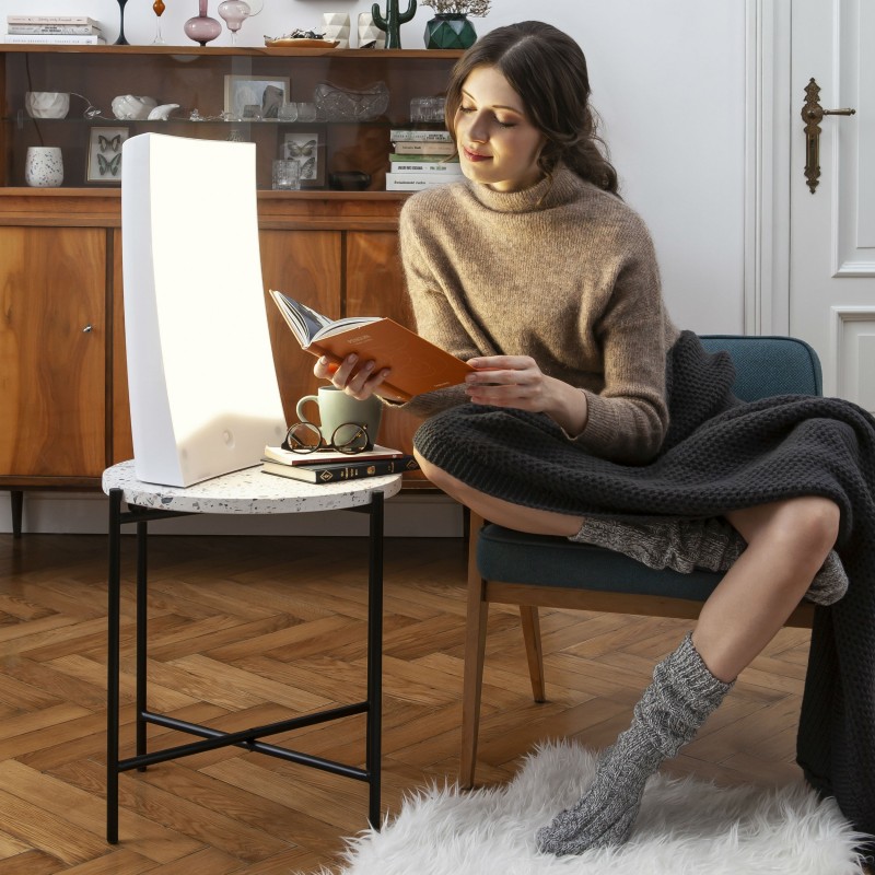 L’appareil de luminothérapie, qui utilise généralement la technologie LED, émet une lumière vive riche en photons et dont l’intensité est mesurée en lux. La lumière de la luminothérapie contient entre 5 et 10 mille lux, ce qui est similaire à la lumière d’été (la lumière terne d’hiver n’est que de 500 lux environ). Ces impulsions lumineuses aident à réguler le système circadien, car elles ont des caractéristiques similaires à celles de la lumière naturelle de l’été, signalant à l’organisme qu’il fait jour et qu’il a besoin de plus d’énergie.
